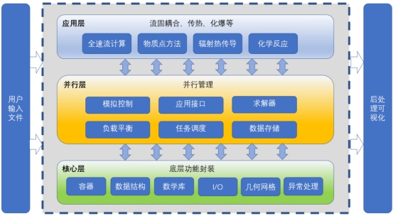 2. 并行組件。包括MPI并行管理組件,負載平衡組件、任務調(diào)度組件,并行I/O組件等。